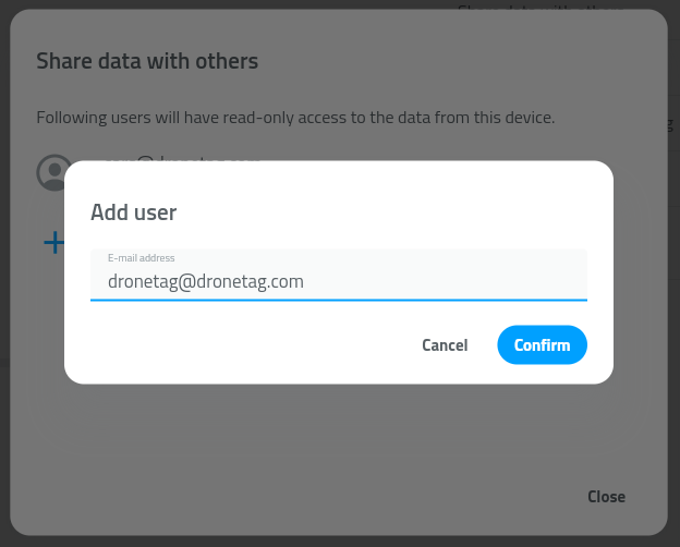 - Enter the email address of the user (the email must be registered in the Dronetag app).