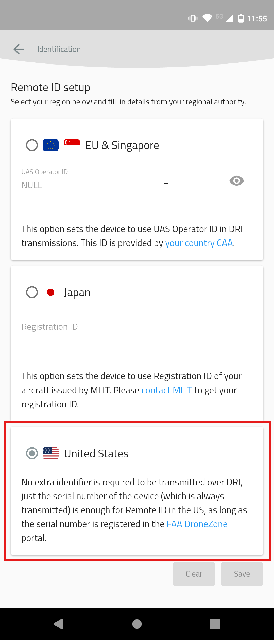 Select the EU as the Remote ID setup.