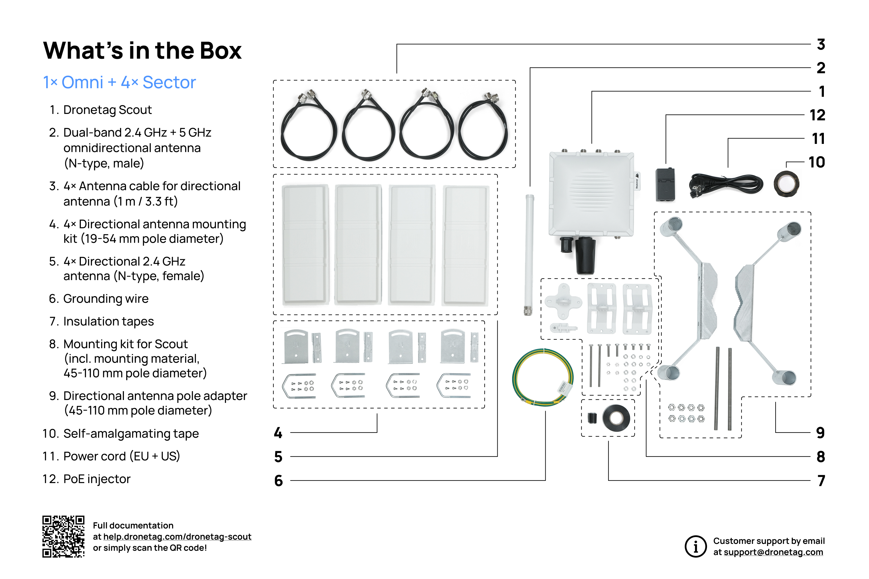 Once you receive your Scout device with the directional antennas configuration, you’ll find everything neatly packed in the delivery box. Here’s what to expect when unboxing your new Scout system.