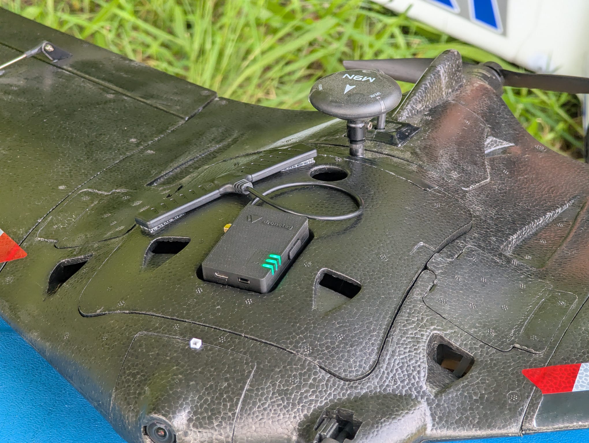 - Don't place Mini 4G over or close to other electrical components such as flight controller, IMU, GNSS antennas, RF transceivers.